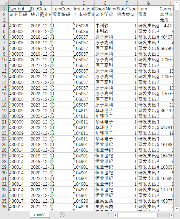 证券代码 统计截止日期 项目编码 上市公司ID 证券简称 报表类型 项目 本期金额/比例 上期金额/比例