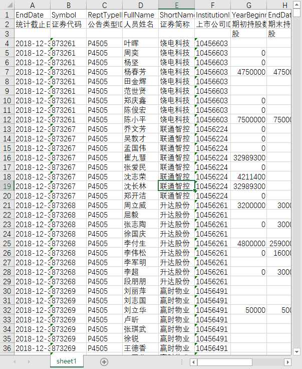 统计截止日期 证券代码 公告类型ID 人员姓名 证券简称 上市公司ID 期初持股数 期末持股数 期末普通股持股比例 期末股票期权数量 被授予的限制性股票数量