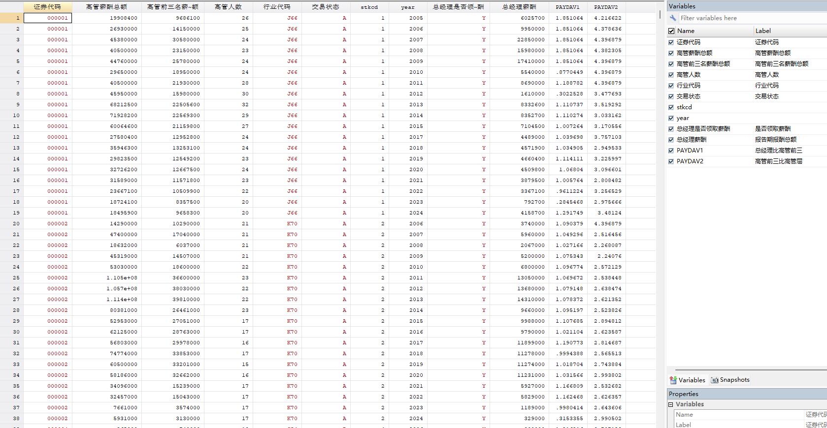 - PAYDAV2高管前三比高管层:高管前三平均薪酬比高管层平均薪酬