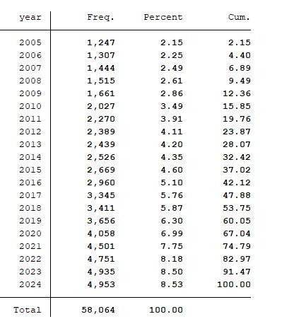 全部A股2005-2024年数据,并做了一下筛选:
