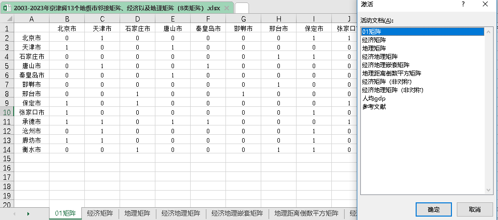2003-2023年京津冀13个地级市权重矩阵(8类矩阵)(1)