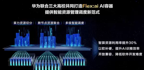 Flex:ai 是华为推出的一款容器化软件解决方案,致力于打造跨芯片架构的统一算力池。它通过将物理算力以约 10% 的粒度进行虚拟化切分,实现对 NPU 和 GPU 资源的灵活调度,有效打破不同类型加速器之间的资源壁垒。