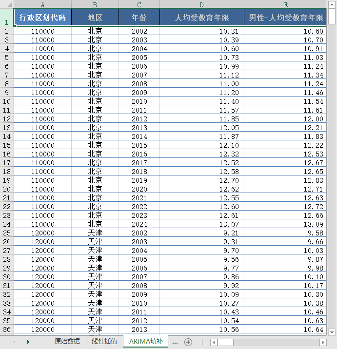 行政区划代码 地区 年份 人均受教育年限 男性-人均受教育年限 女性-人均受教育年限 6岁及6岁以上人口数_人 6岁及6岁以上男性人口数_人 6岁及6岁以上女性人口数_人 6岁及6岁以上未上过学人口数_人 6岁及6岁以上未上过学男性人口数_人 6岁及6岁以上未上过学女性人口数_人 6岁及6岁以上小学人口数_人 6岁及6岁以上小学男性人口数_人 6岁及6岁以上小学女性人口数_人 6岁及6岁以上初中人口数_人 6岁及6岁以上初中男性人口数_人 6岁及6岁以上初中女性人口数_人 6岁及6岁以上高中人口数_人 6岁及6岁以上高中男性人口数_人 6岁及6岁以上高中女性人口数_人 6岁及6岁以上大专及以上人口数_人 6岁及6岁以上大专及以上男性人口数_人 6岁及6岁以上大专及以上女性人口数_人