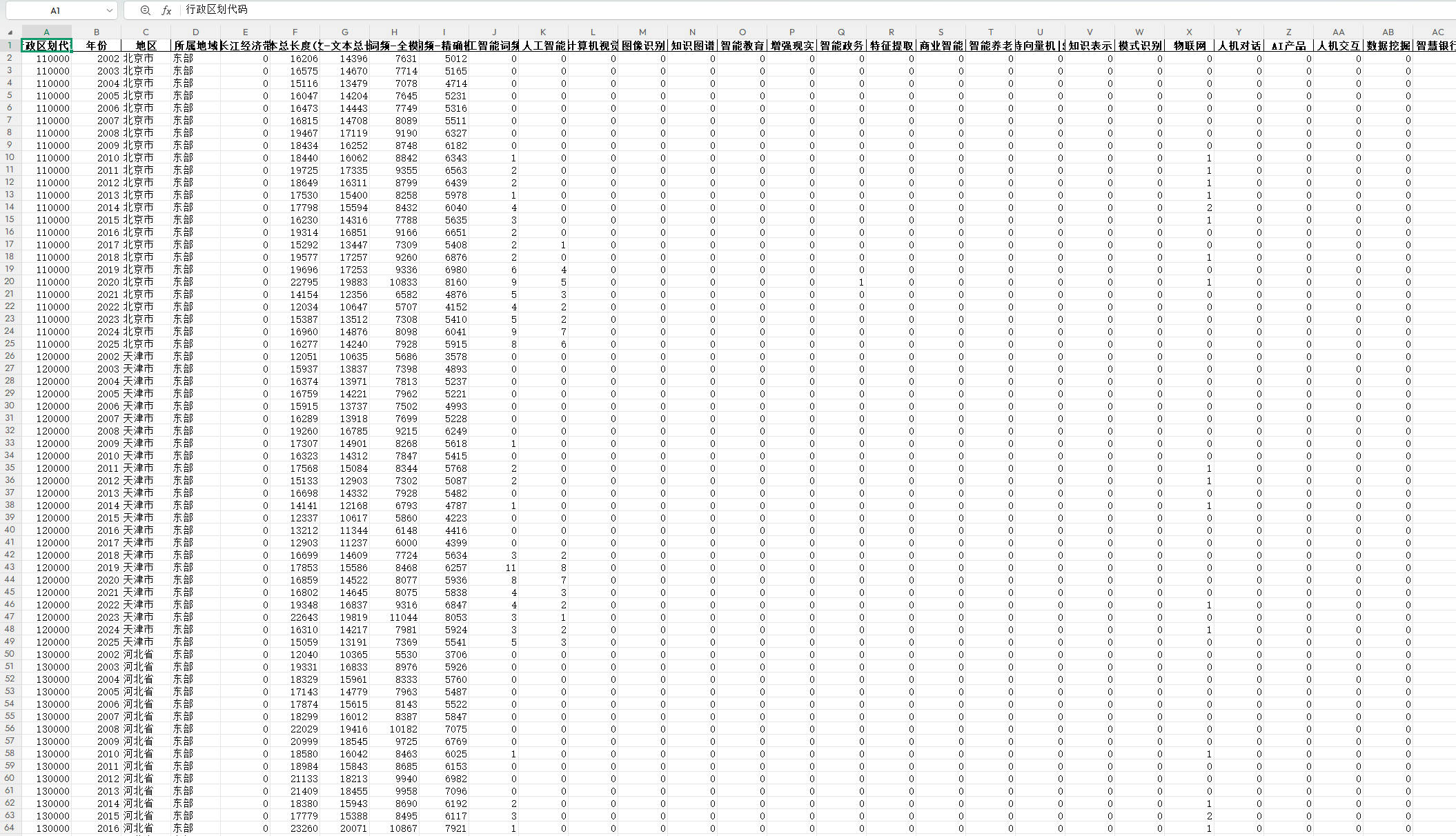 格式,覆盖2002-2025年全国各省份,可用于研究省级人工智能政策的时空演变、