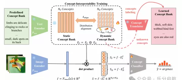 技术路径: 构建双轨制概念存储机制:静态概念库由大型语言模型生成初始语义概念;动态概念库则通过可训练向量在训练过程中不断捕捉未被覆盖的重要隐含概念。