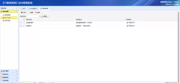 角色管理:可对系统中的角色信息进行增删改查,实现权限分组控制。
