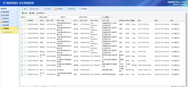 订单管理:管理员可查看所有订单详情,并执行新增、修改、查询和删除等管理操作。