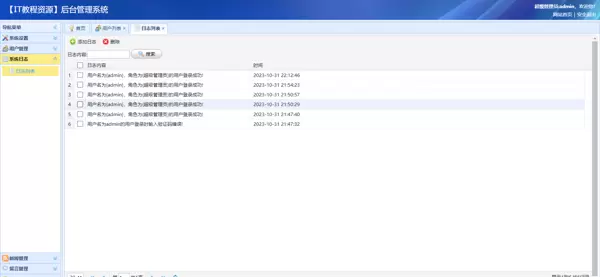 日志查看:系统记录完整操作日志,管理员可随时查阅以追踪系统运行情况和用户行为轨迹。