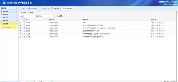 留言管理:管理员可查看、编辑和删除用户的留言内容,提升客户服务响应效率。