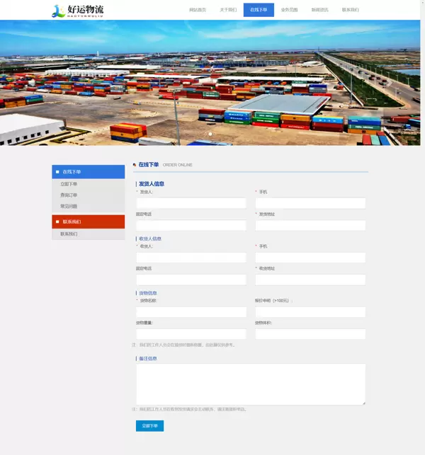 在线下单:用户只需填写发货人、收货人及货物相关信息,即可完成订单提交。