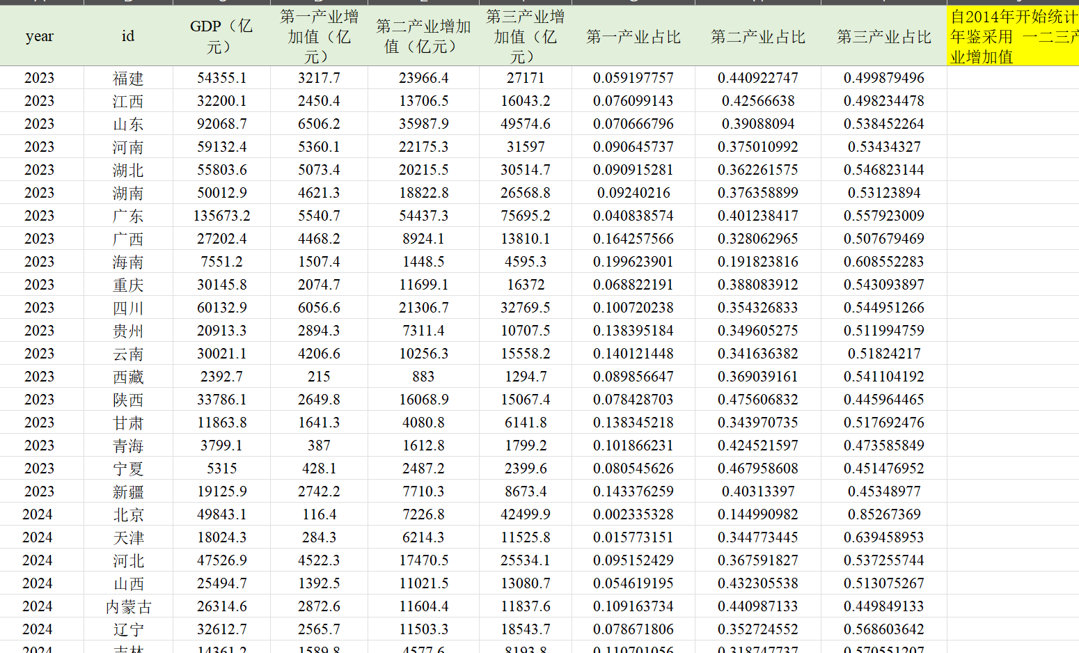 [火]数据内容:各省第一、二、三产业从业人员数、第一、二、三产业增加值、第一、二、三产业占GDP比重