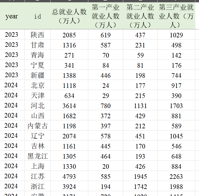注:就业人数数据已根据最新年鉴进行统一更新处理,因为个别省份存在个别年份就业人数不统一情况,诸如黑龙江等。故此,根据最新年鉴统一‼️‼️