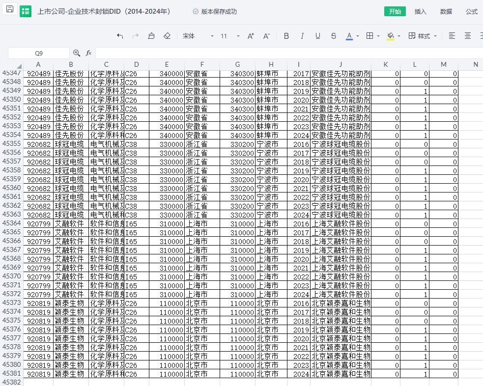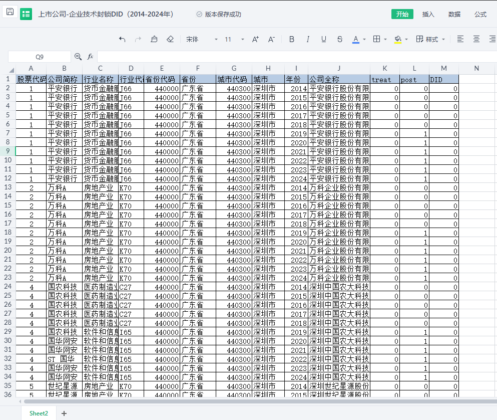 包含指标:股票代码 公司简称 行业名称 行业代码 省份代码 省份 城市代码 城市 年份 公司全称 treat post DID