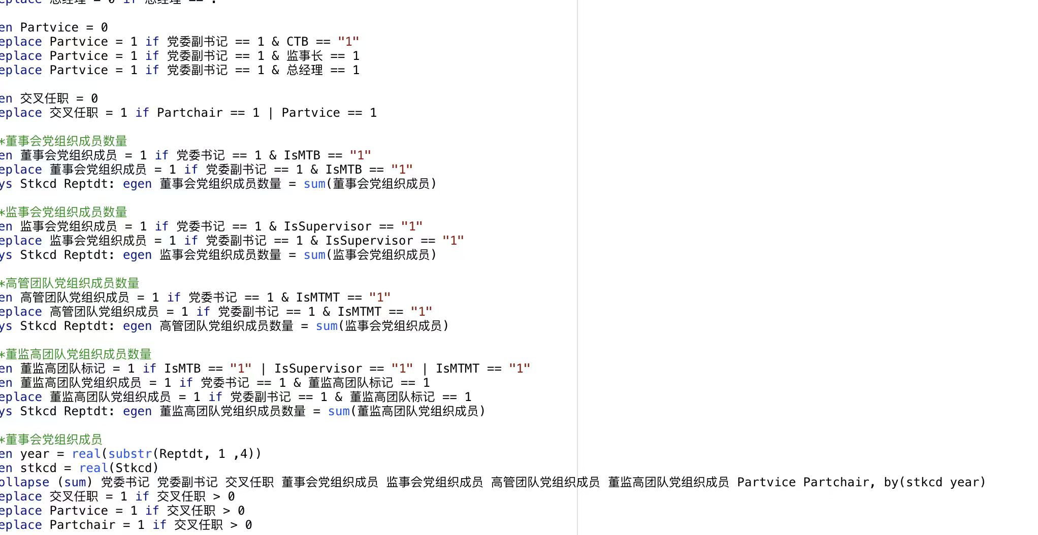 与此同时附带配套原始数据,具体指标为: stkcd year PartyA PartyB PartyC Partvice Partchair 党委书记 党委副书记 交叉任职 董事会党组织成员 监事会党组织成员 高管团队党组织成员 董监高团队党组织成员