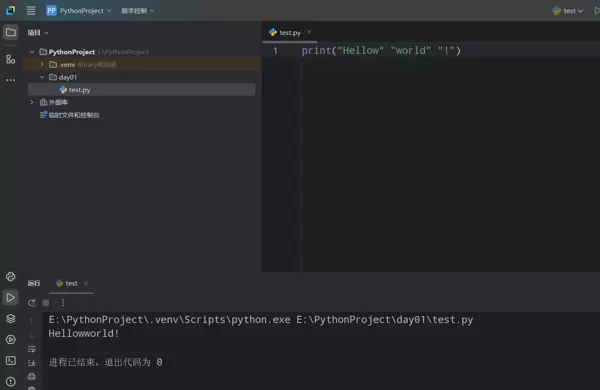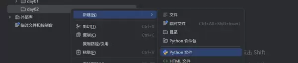 进入day01目录后,创建一个Python源文件。通过这种方式,可以清晰划分不同阶段的学习内容,便于后续回顾与查找。