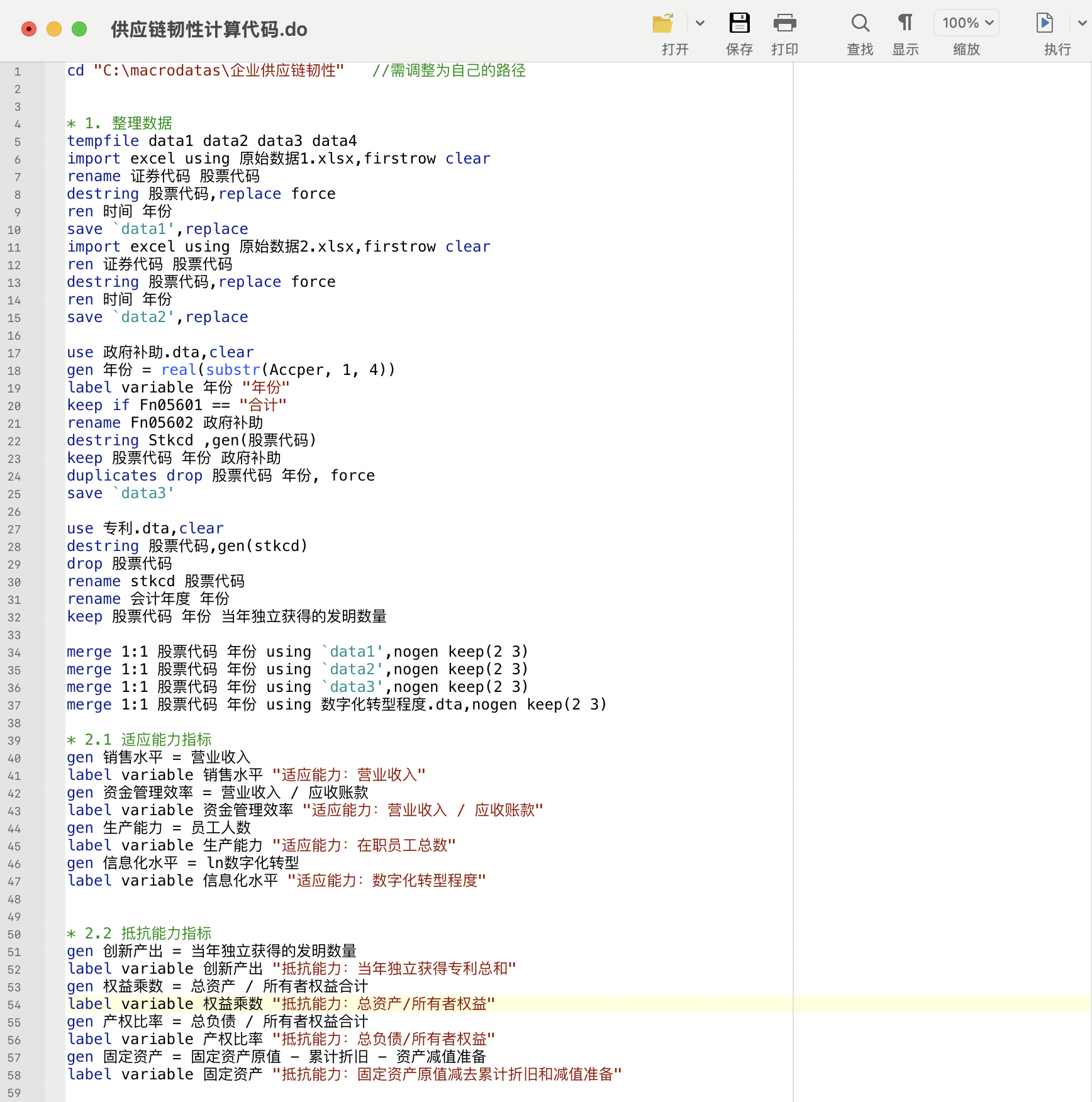二、数据介绍数据名称: 上市公司供应链韧性数据(原始数据 + dofile + 测算结果)
