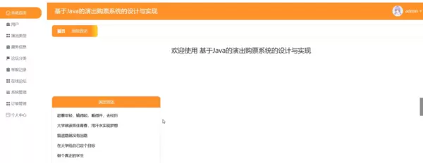 系统界面设计遵循简洁直观原则,功能布局合理,用户可通过导航菜单快速定位所需服务。无论是普通用户购票,还是管理员发布演出信息,操作流程均经过优化,学习成本低。