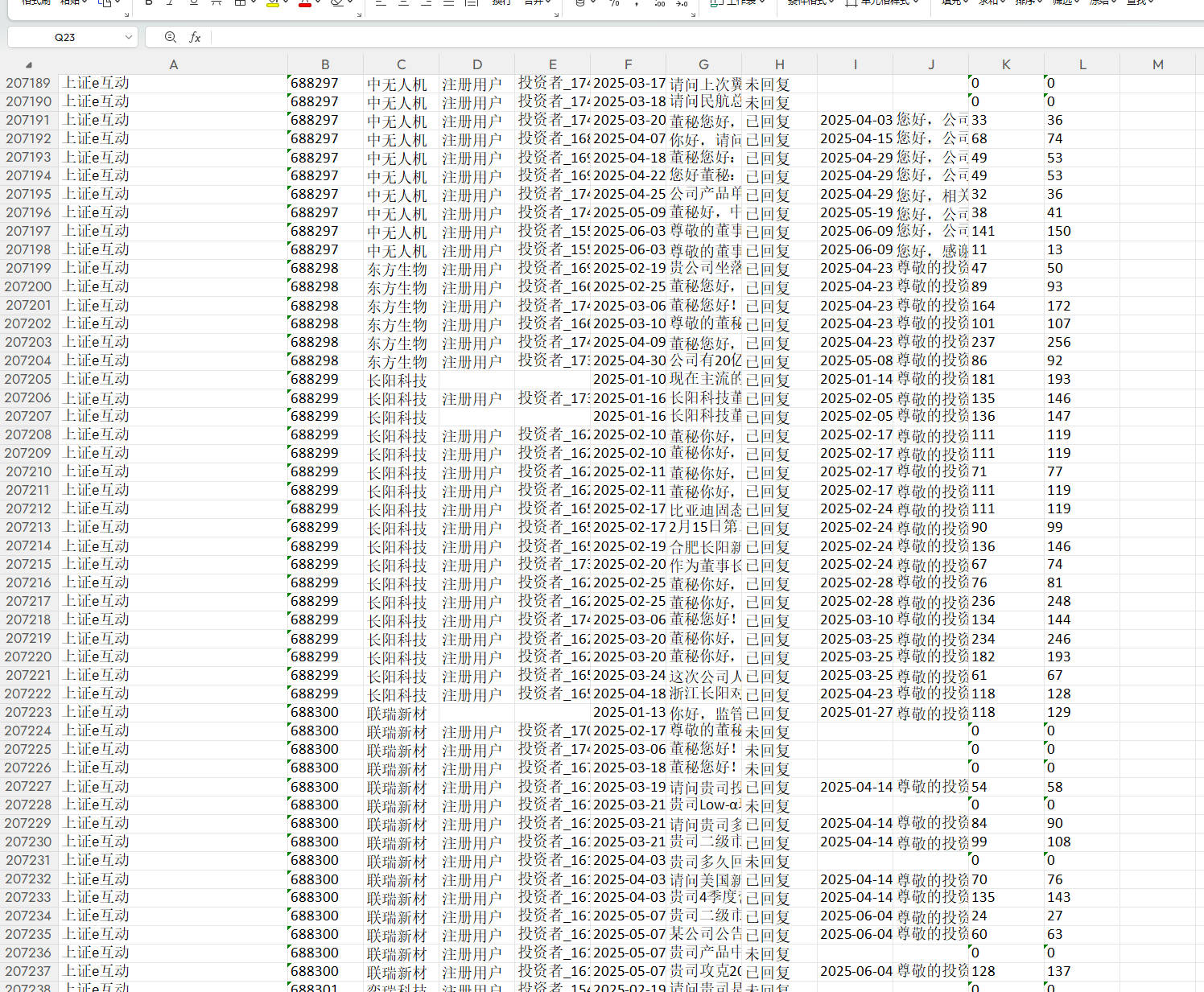 本数据来源于沪深交易所互动易官方网站的网民问答和回复,全部内容真实有效。