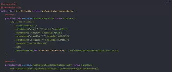 系统通过 Spring Security 框架集成 JWT 认证流程,保障接口访问的安全性。所有请求需携带有效 Token,由过滤器统一校验身份与权限等级。