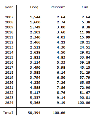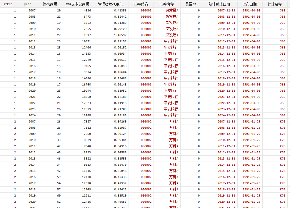 2024 - 2007年A股上市公司企业管理层短视主义数据送stata代码参照方法:李倩茹, 翟华云.管理者短视主义会影响企业数字化转型吗