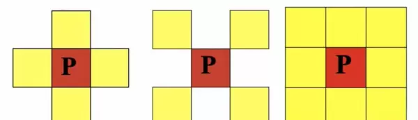 对角邻域(N_D(p)):指像素 p 的四个对角方向上的像素。