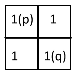 - q 位于 p 的对角位置,且 p 与 q 的4-邻域之间无交集。