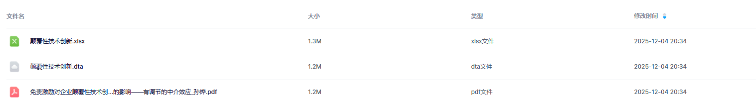 一、数据介绍数据名称:上市公司颠覆性技术创新数据