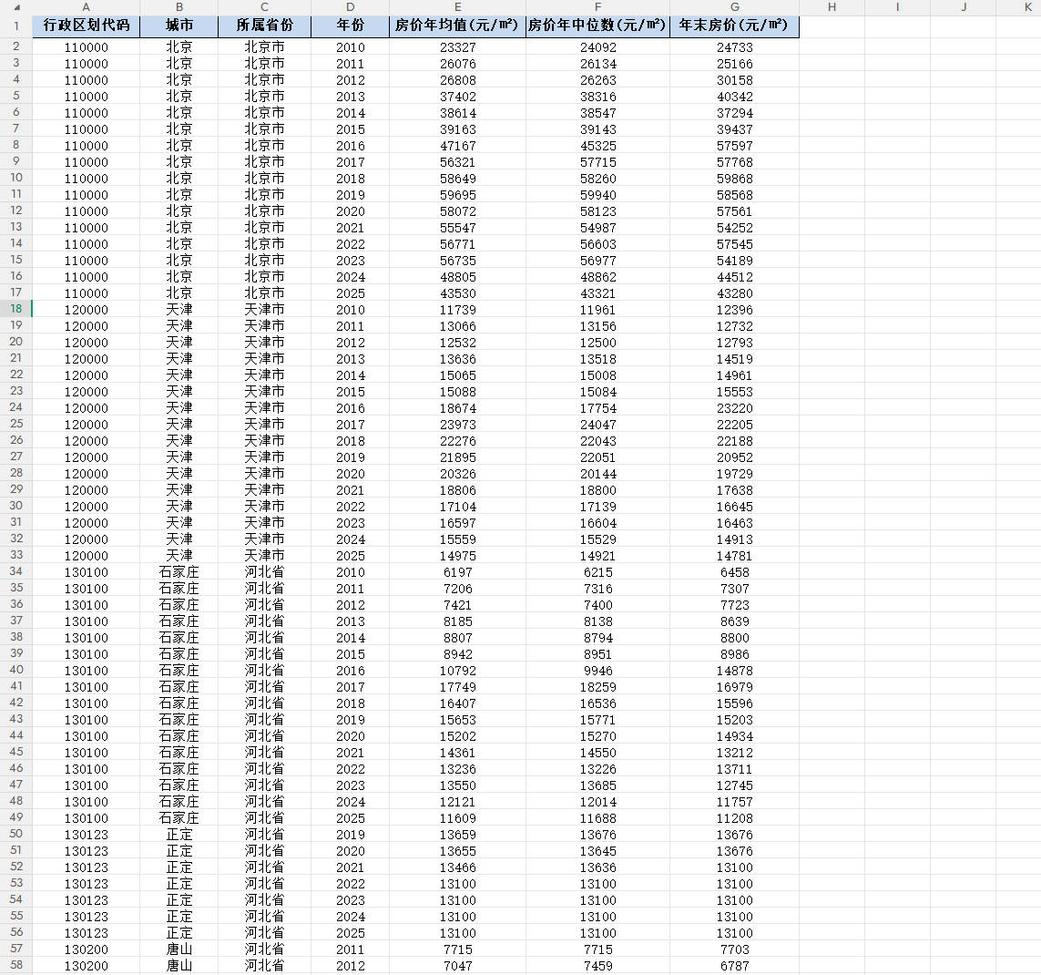 本数据集收录了中国340个城市的二手房价历史数据,时间跨度为2010年1月至2025年7月,共计15年7个月的月度数据。