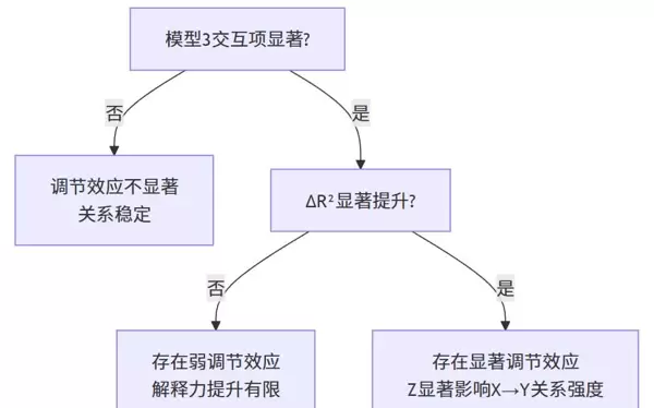 交互项系数(X*Z)是判断调节是否存在的重要证据,它揭示了 Z 如何改变 X 对 Y 的影响路径。