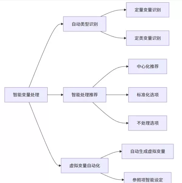 SPSSAU 在变量预处理方面具备突出的技术能力,能够根据数据特征和模型需求自动推荐或执行适当的变量转换策略。