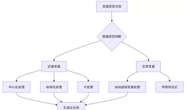 系统能够自动识别变量类别,并推荐最优处理方案。对于连续型变量,默认采用中心化处理,以降低多重共线性风险,提升回归系数解释的清晰度。