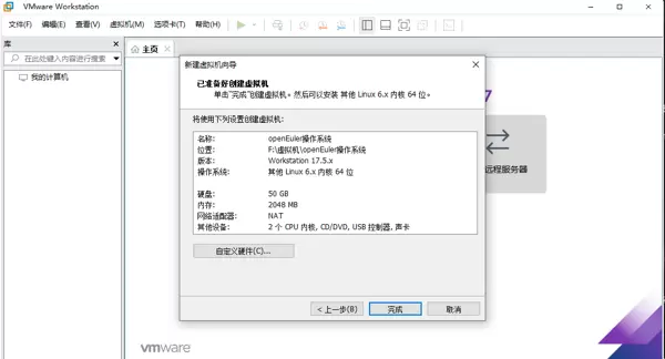 点击“完成”按钮结束安装流程,此时 VMware Workstation 已成功部署至本地系统。
