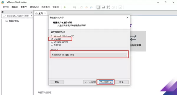 在操作系统类型选择环节,由于 openEuler 基于 Linux 内核开发,因此应选择“Linux”作为客户机操作系统类型;版本则指定为“其他 Linux 6.x 内核 64 位”(当前最高支持级别)。