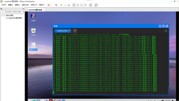 通过执行 ping 命令测试虚拟机对外部网络的访问能力,例如尝试连接公共 DNS 服务器(如 8.8.8.8)或域名(如 www.openeuler.org),确认网络链路通畅。