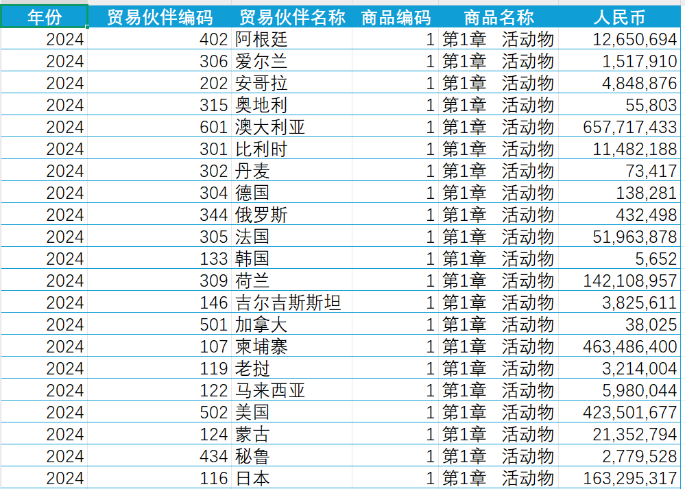 1、数据源名称:中国与世界各国农产品进出口贸易数据(2015-2024年)