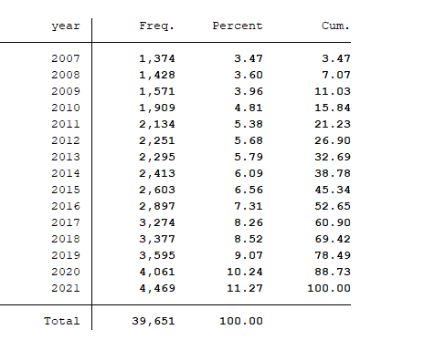 A股上市企业2007 - 2021年金融投资基础与结果数据及stata计算代码优化