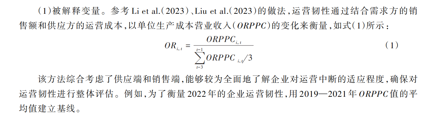 参考Li et al(. 2023);Liu et al(. 2023);赵云辉等(2024),采用单位生产成本营业收入占其三期移动平均值的比重进行衡量,测算公式如下图所示: