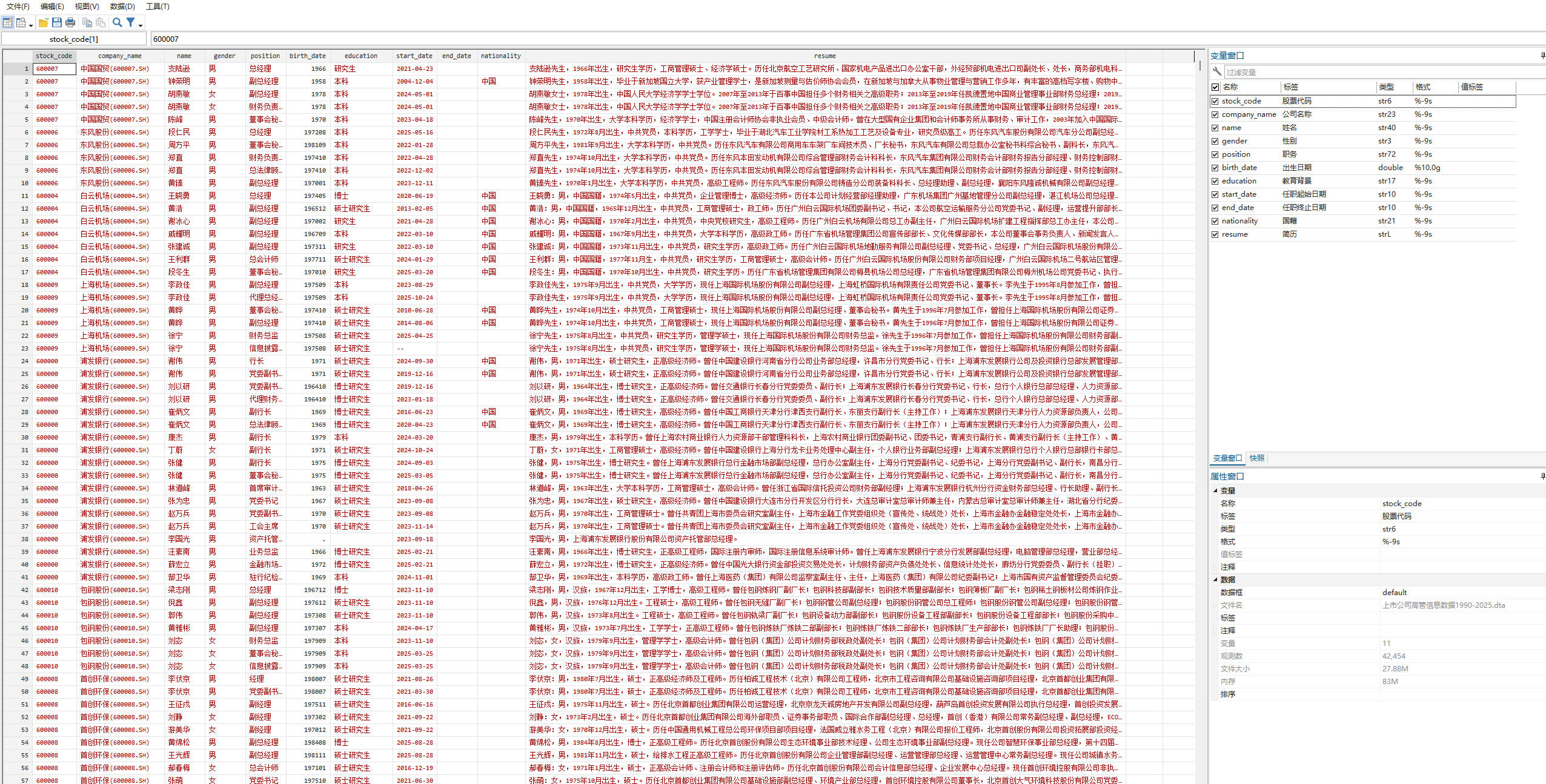2. 上市公司高管信息数据1990-2025.dta - Stata格式数据