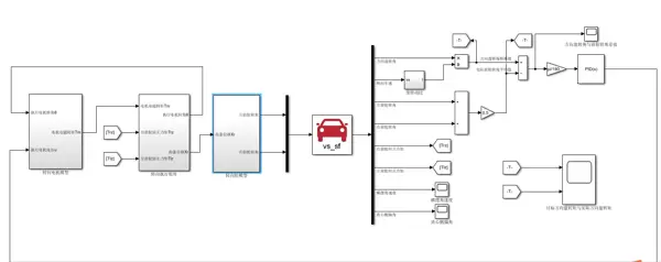 Simulink 模型在整个联合仿真流程中处于中枢地位,集成了电机控制逻辑、执行机构动力学以及与 Carsim 的数据交互接口。
