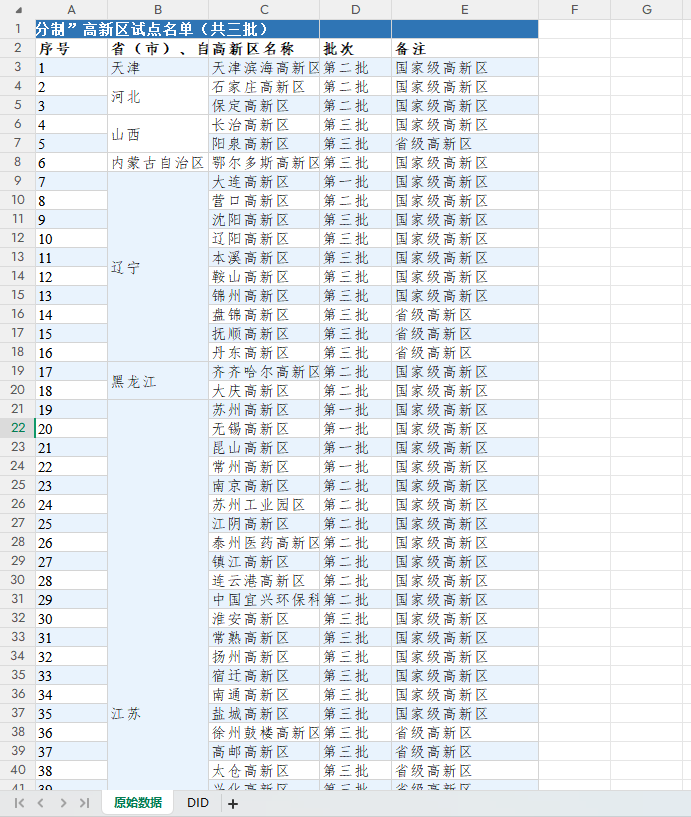 本数据通过在权威官方媒体、新闻中心以及王修华和刘锦华(2025)《科技金融与企业全要素生产率:来自“企业创新积分制”的证据》的搜寻,其DID虚拟变量构建方法如下:若城市当年成立了试点高新区,该城市当年及以后取值为1,否则取值为0。