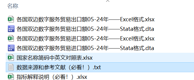 各国双边数字服务贸易进出口额2005-2024年【最新!含2024年】,整理好的面板数据可以直接使用!含六大类和总的数字服务贸易,全网首发!!!