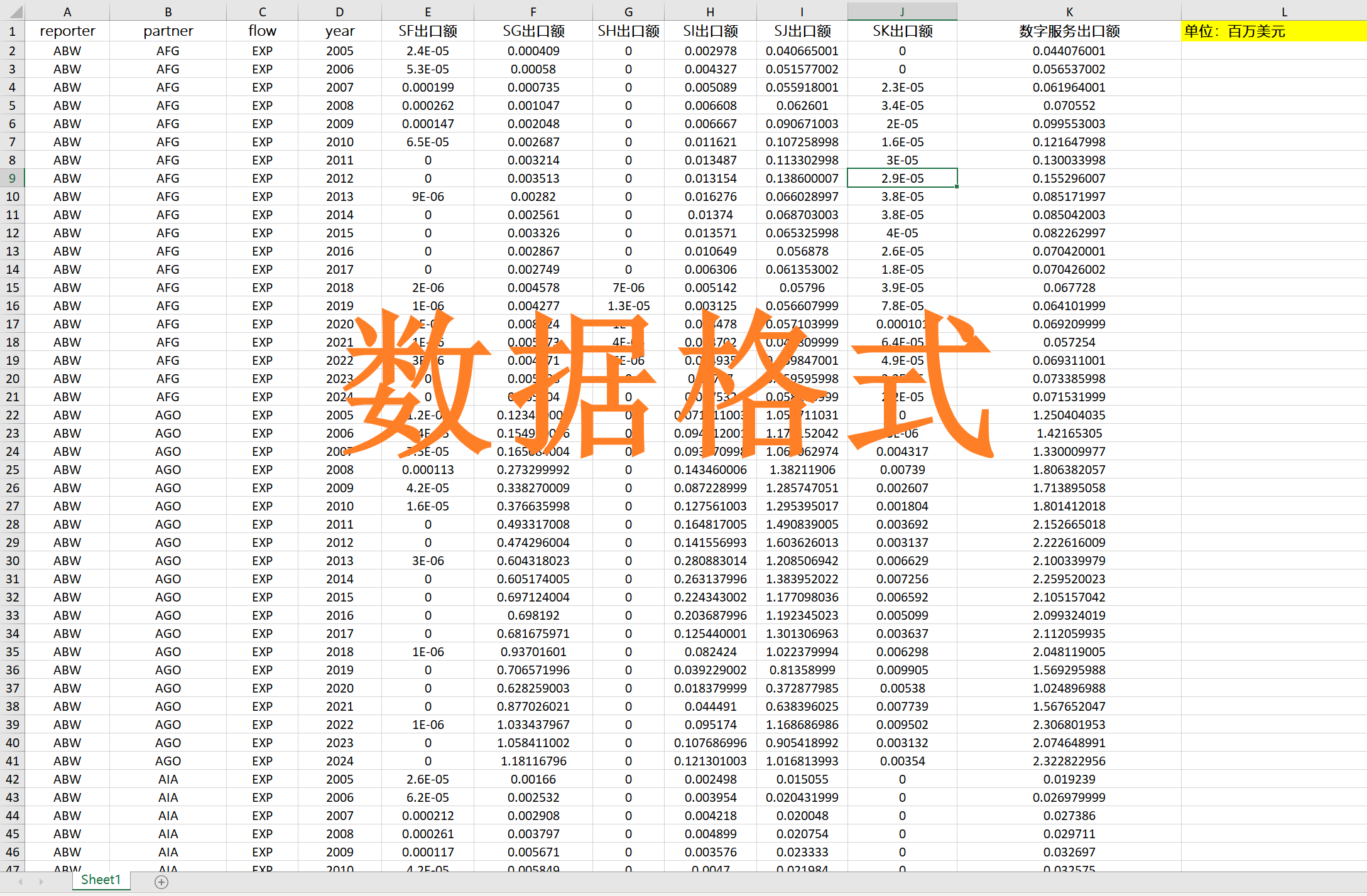 包含200+个国家(地区)的双边数字服务贸易数据,缺失值很少!
