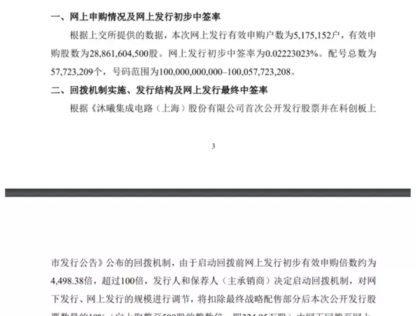 另据红星资本局12月7日消息,随着回拨机制的启动,本次发行的最终分配结果也已明确:网下最终发行数量为2282.9081万股,占扣除战略配售后发行总量的70.26%;网上最终发行数量为966.55万股,占比29.74%。网上投资者中签率最终定格在0.03348913%。