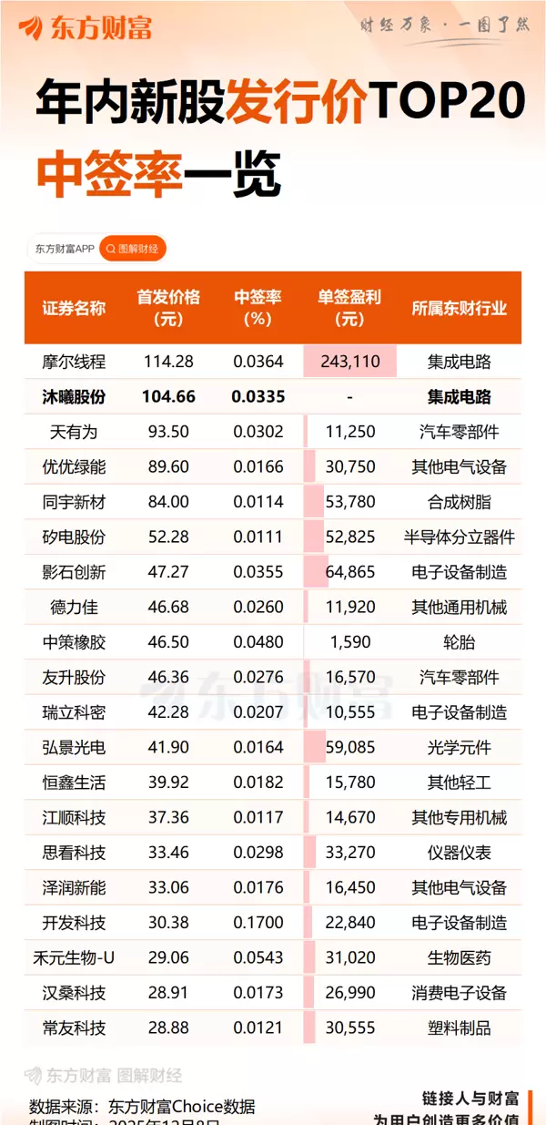 此前,摩尔线程上市首日开盘即暴涨468%,十分钟内股价一度触及688元/股高位。以其中签每签500股计算,最高单签盈利可超过28万元。受此影响,市场对沐曦股份的上市表现高度关注。若其上市当日涨幅能接近摩尔线程水平,则以当前发行价测算,单签最大收益有望突破20万元。