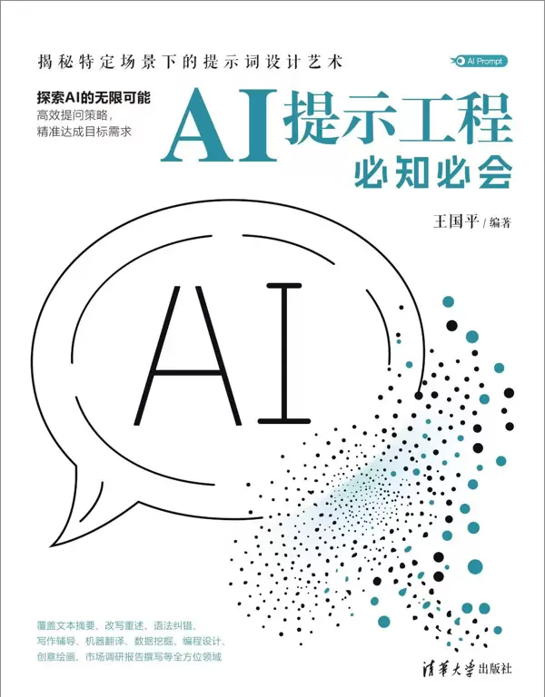 《AI提示工程必知必会》系统梳理了AI提示工程的核心知识与实践技能。书中涵盖多种提示词类型的应用方法,包括问答式、指令式、状态类、建议式、安全类及感谢类提示词,并通过实战演练帮助读者掌握其使用技巧;详细介绍了如何利用提示词完成文本摘要生成、内容改写、语法纠错和机器翻译等自然语言处理任务,同时拓展至数据挖掘与程序开发领域;还探讨了AI在绘画创作中的应用,对比分析百度文心一言与阿里通义大模型的功能特点,并展示提示词在市场调研中的具体实战案例。阅读本书有助于读者高效运用AI提示工程技术,优化工作流程,激发创新思维,在职场竞争中占据优势地位。