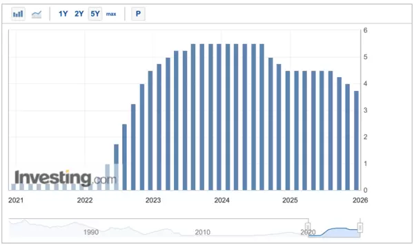 北京时间12月11日凌晨3点,美联储宣布下调联邦基金利率目标区间25个基点,由原先的3.75%—4.00%调整至3.50%—3.75%,符合市场普遍预期。此次降息为年内第三次,前两次分别发生在9月17日与10月29日,每次均下调25个基点,累计降息已达75个基点。