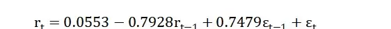 其中,rt 表示第t期的收益率,c 为常数项,?1 为自回归系数,θ1 为移动平均系数,εt 为白噪声误差项。