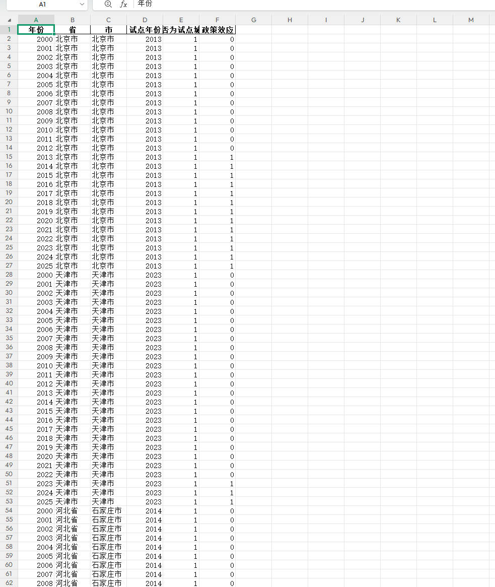 | 是否试点城市 | 1=是试点城市,0=非试点城市(Treat变量) |