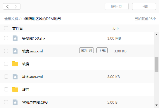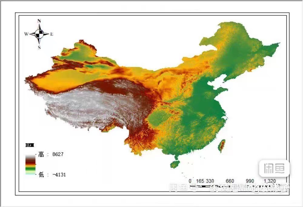 中国DEM数据(❶坡度,❷坡向,❸山体阴影,❹等高线,❺DEM数据)