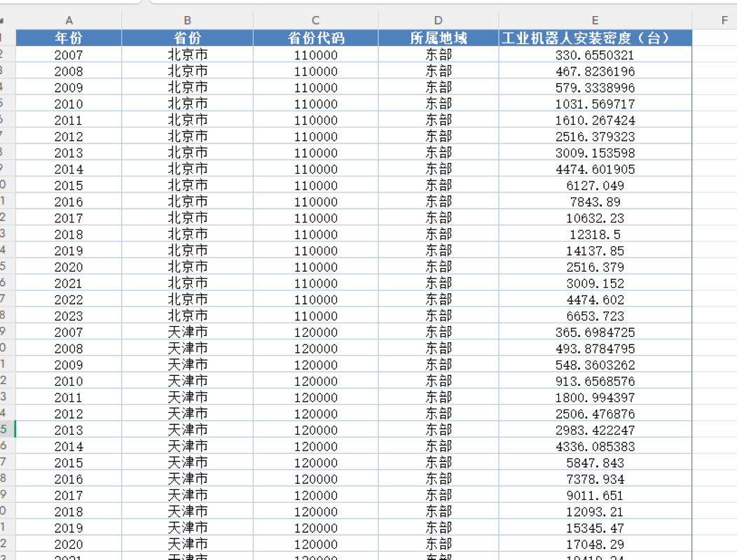 附件 31省-工业机器人安装密度(2007-2023年)
